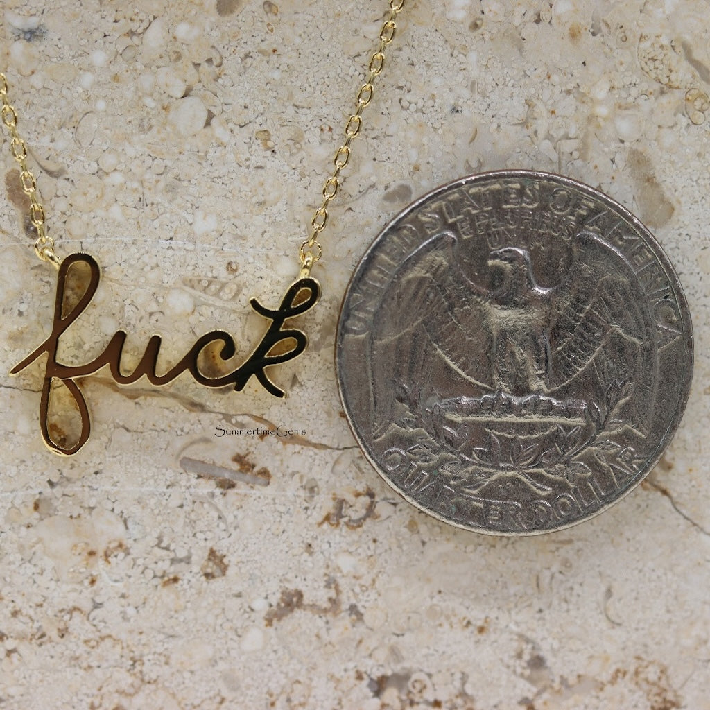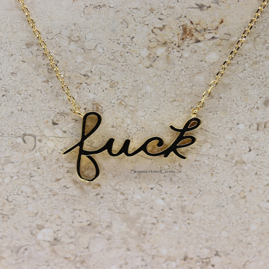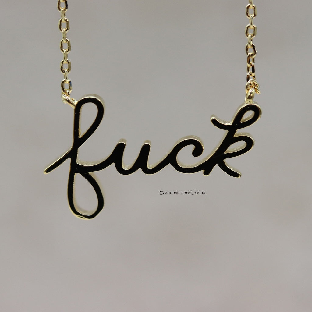 Make a bold statement with this unique 18K Gold Dipped Handwritten "F**k" Pendant Necklace. Crafted with attention to detail, the pendant features a rebellious, handwritten font that captures the essence of individuality and confidence. Whether you're expressing your personality or making a fashion-forward statement, this necklace is the perfect accessory. The luxurious gold-dipped finish adds an elegant touch, making it a standout piece for any occasion. Wear it alone for a bold look or layer it with other necklaces for a more personalized style. A must-have for anyone who embraces authenticity and daring fashion.